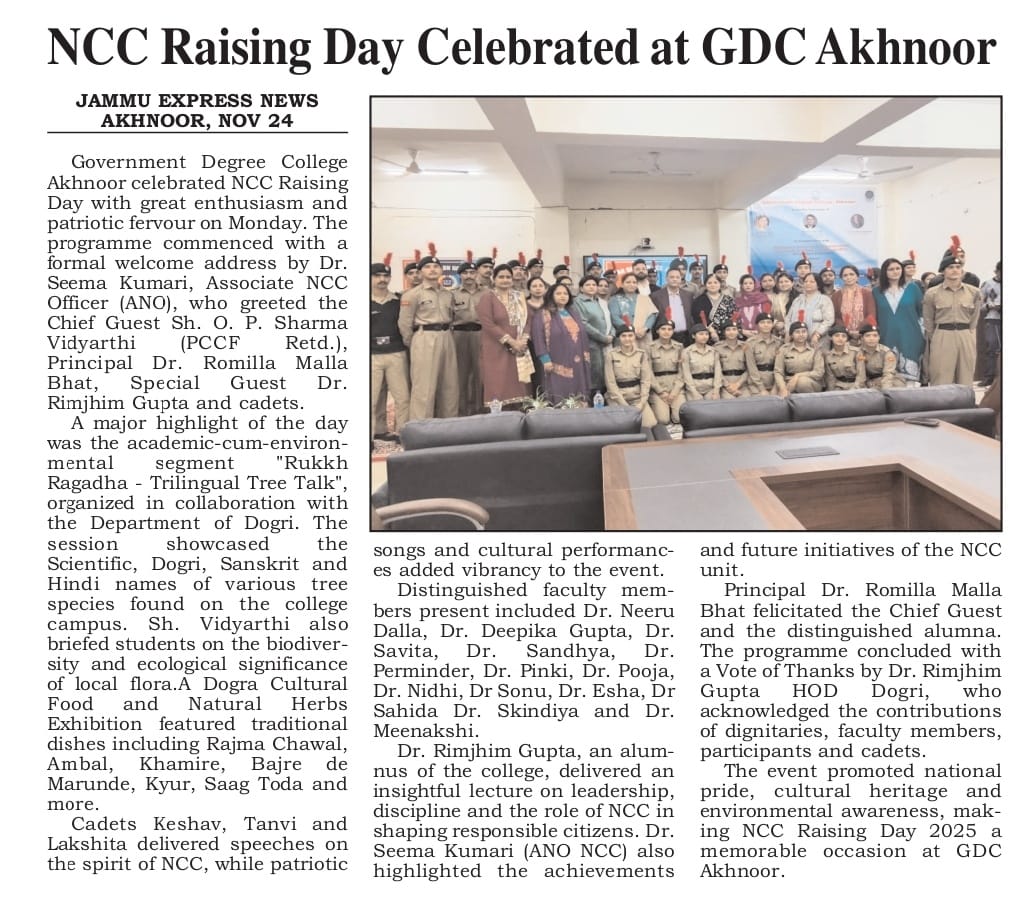 NCC Raising Day celebrated at GDC Akhnoor