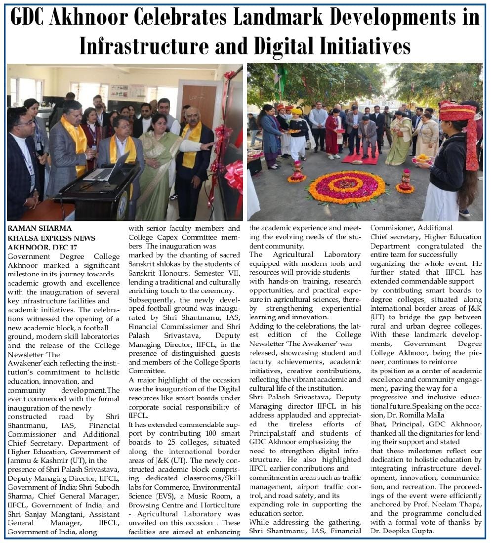 GDC Akhnoor celebrates Landmark Developments in Infrastructure and Digital Initiatives