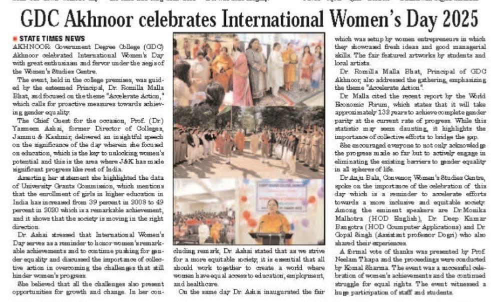 GDC Akhnoor Celebrates International Women's Day 2025 by organising a series of lectures w.e.f 8-11 March 2025.