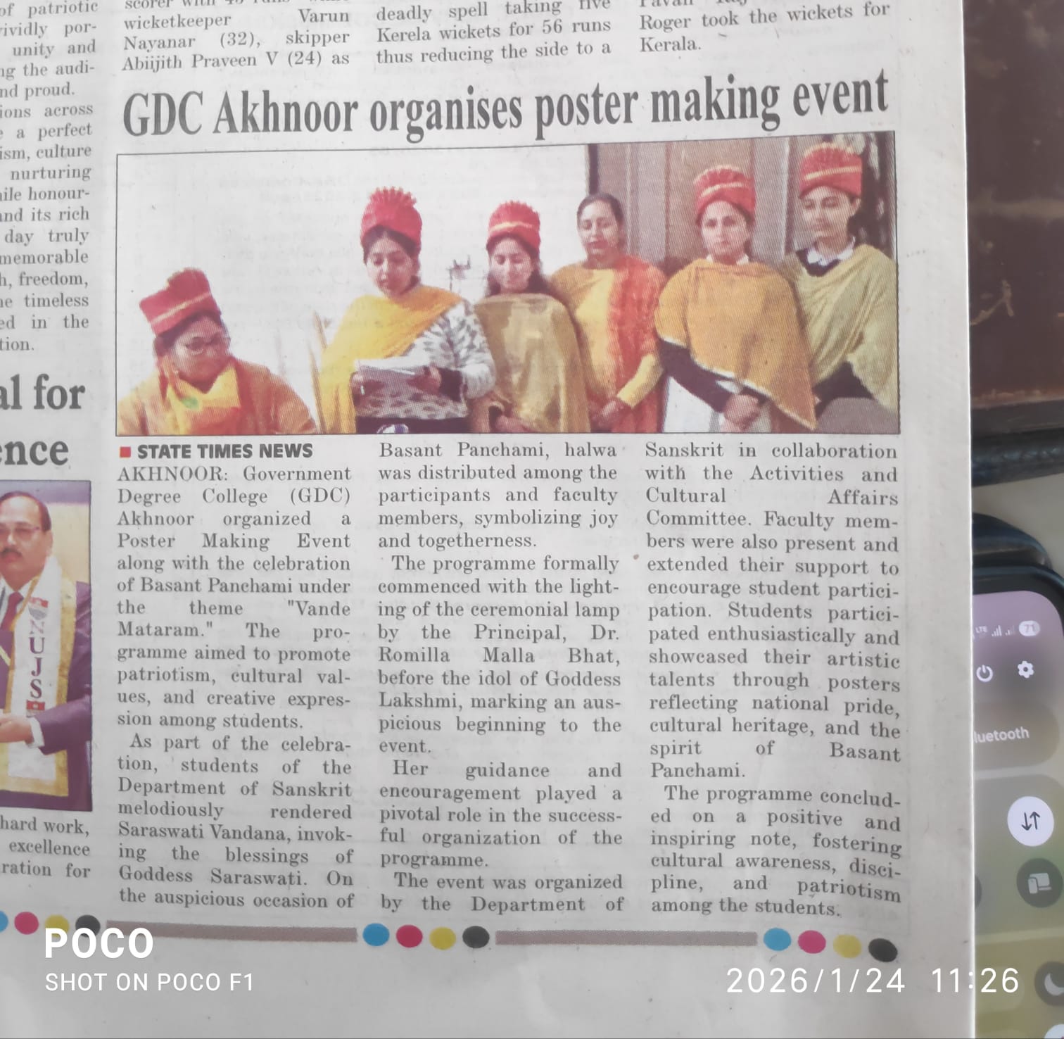 Vasant Panchmi Celebrated along with Poster making competition under the theme "Vande Mataram"