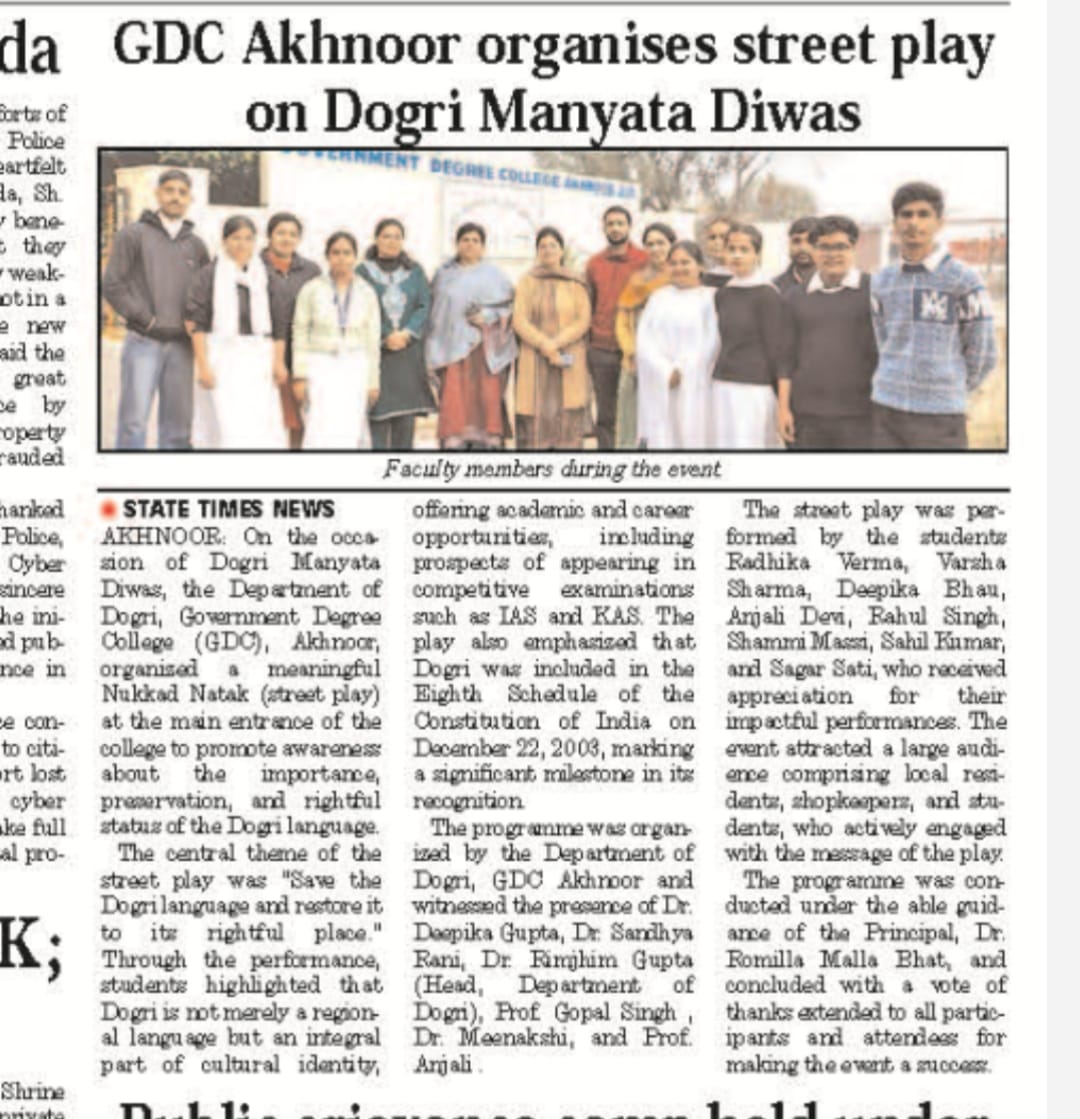 Dogri Manyata Diwas Observed at GDC Akhnoor