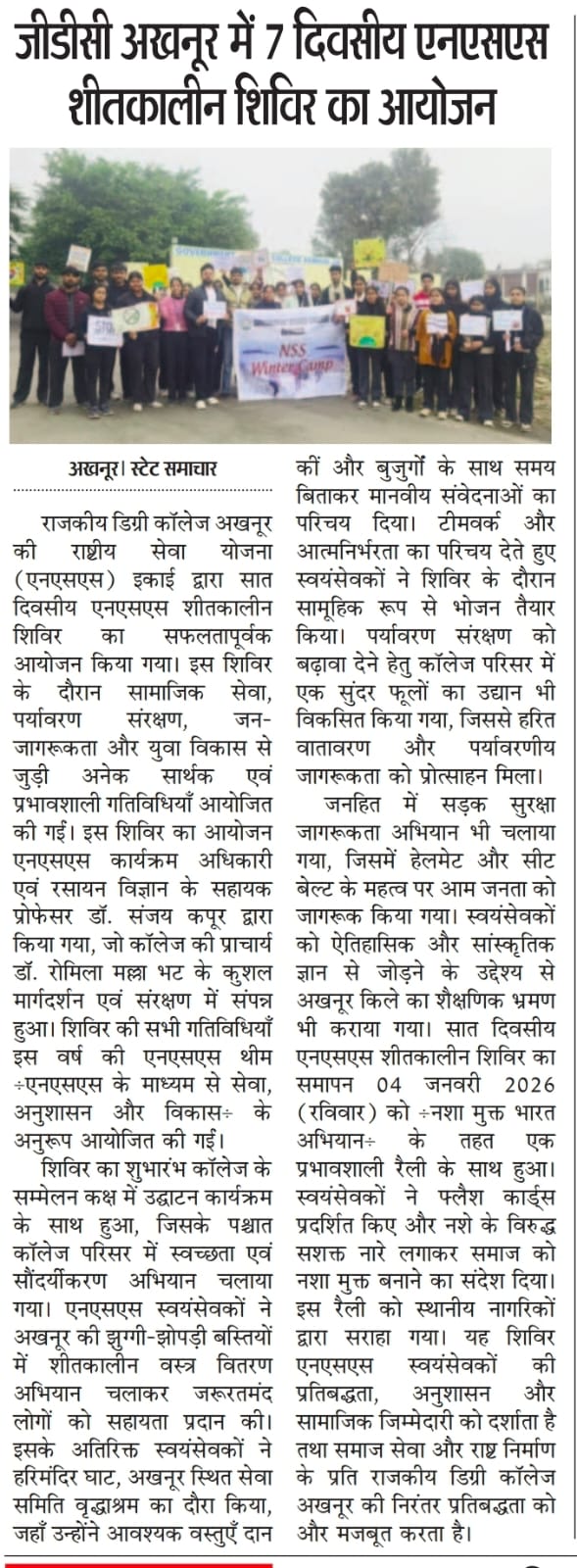 Seven Days Winter Camp organised by NSS Unit of GDC Akhnoor